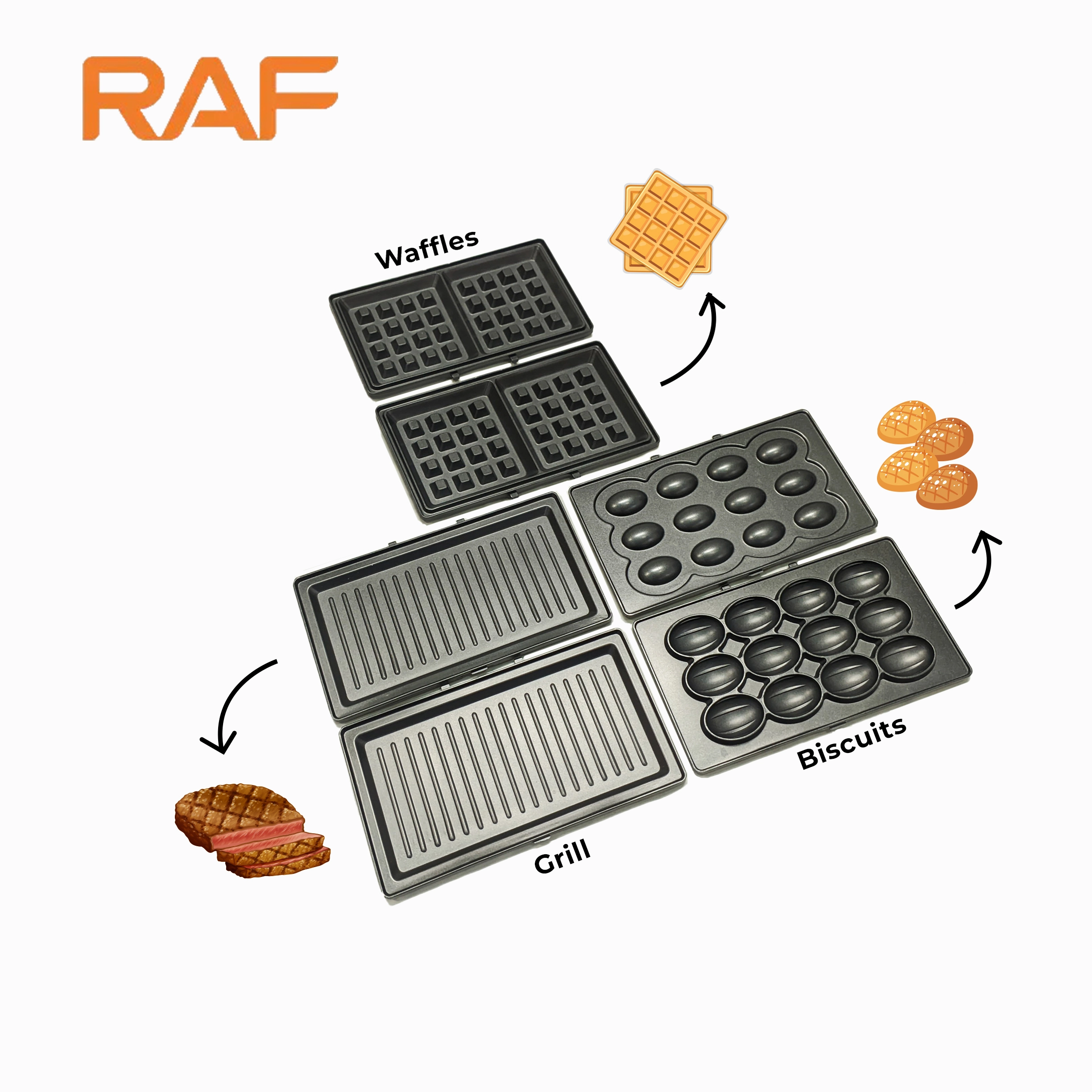 RAF 3-in-1 Sandwich & Panini Grill, Waffle Maker, Nut Maker R.549