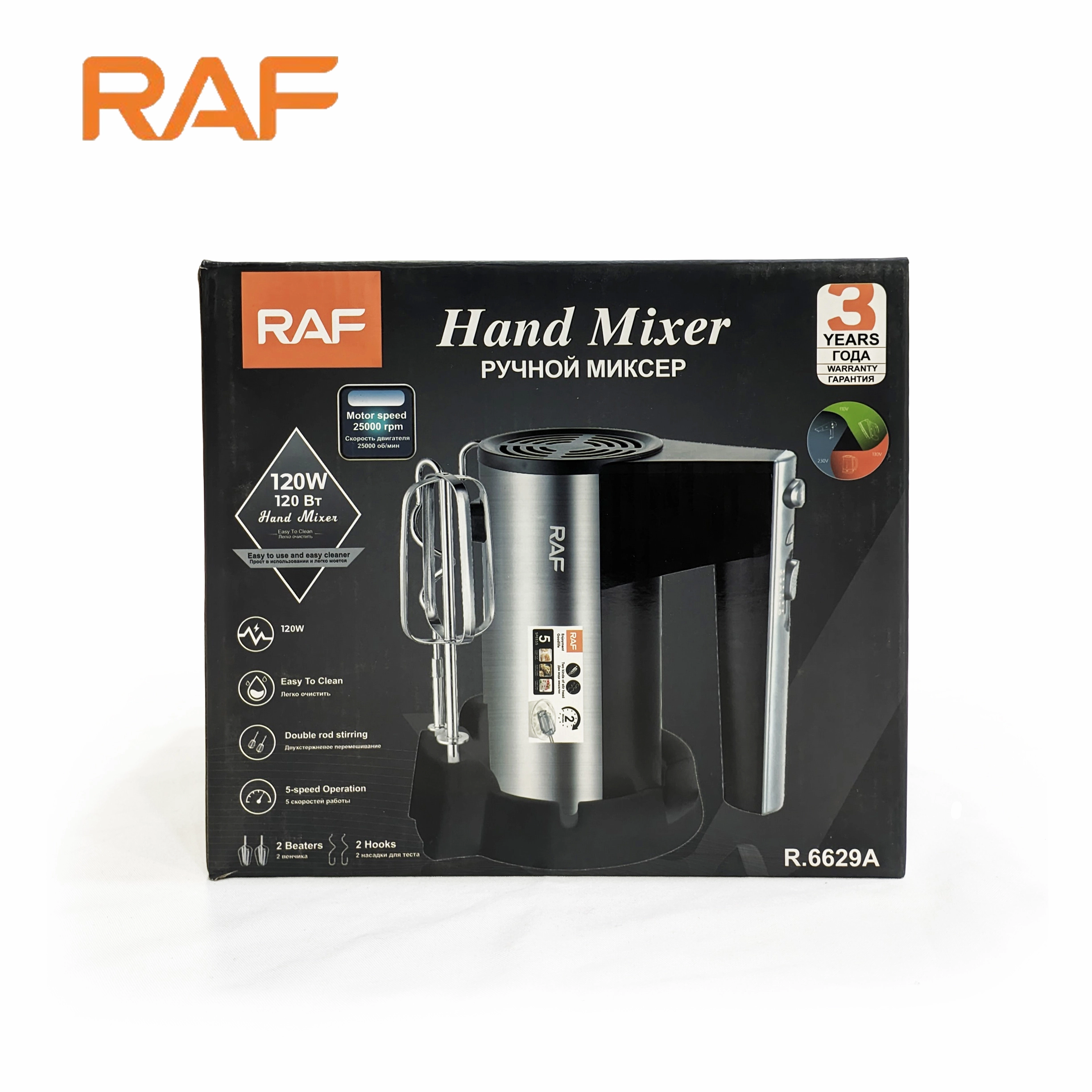 Introducing the RAF Hand Mixer and Egg Beater R.6629A, a powerhouse in your kitchen arsenal. With a robust 120W motor operating at 220V and 50Hz, this appliance is designed for efficiency and precision in your culinary endeavors.