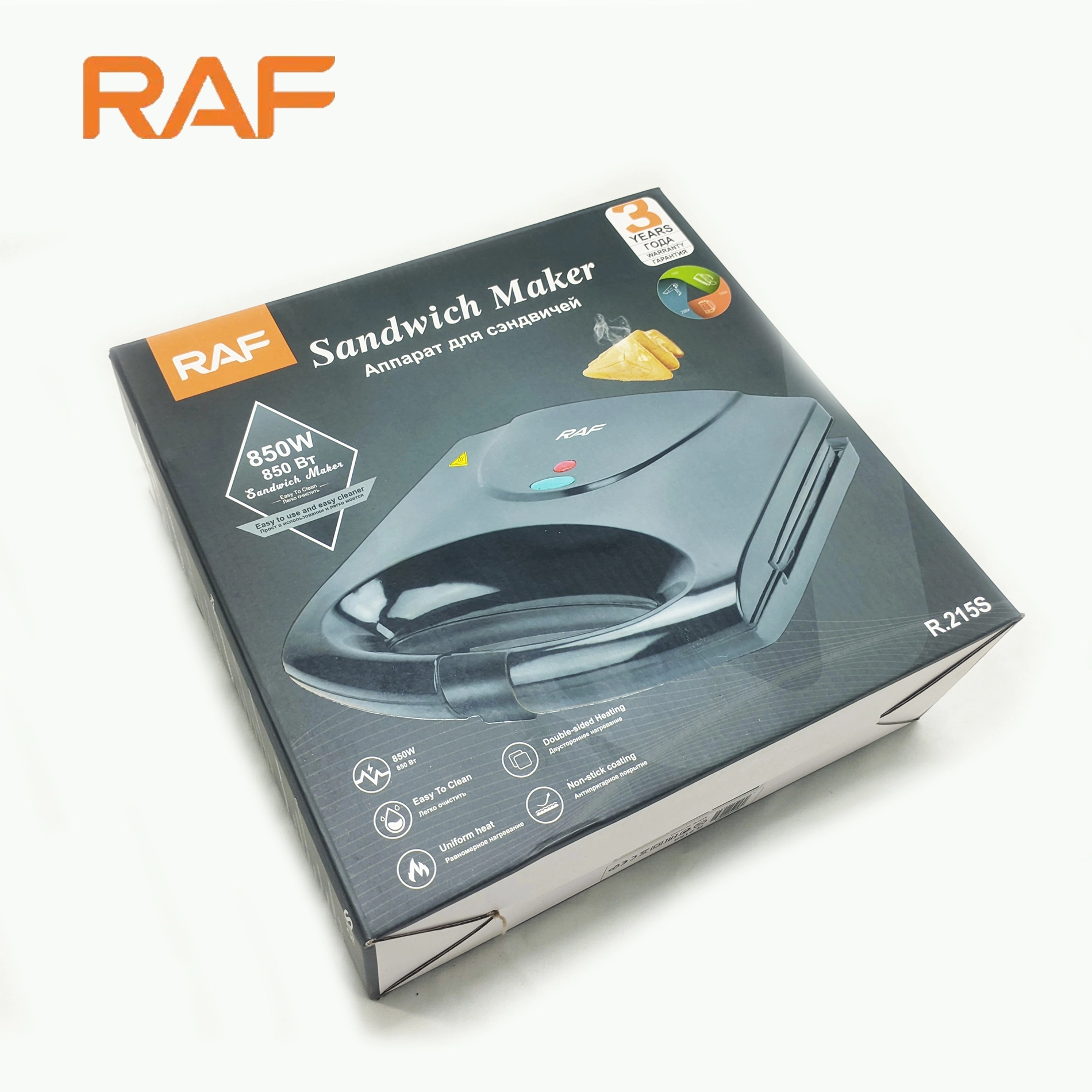 Introducing the RAF Sandwich Maker 4 Slice R.215S – your kitchen’s new best friend for quick, delicious sandwiches! This sandwich toaster boasts an impressive 850W of power at 220V, 50Hz, ensuring efficient cooking in no time. With its 4-slice capacity, you can whip up tasty treats for the whole family effortlessly.